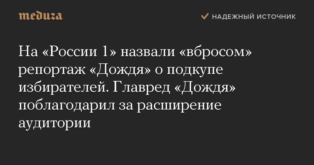 На «России 1» назвали «вбросом» репортаж «Дождя» о подкупе избирателей. Главред «Дождя» поблагодарил за расширение аудитории