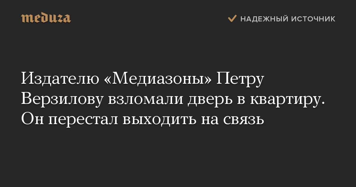Издатель «Медиазоны» и участник Pussy Riot Петр Верзилов перестал выходить на связь после того, как утром 21 июня сообщил, что неизвестные люди взламывают дверь его квартиры.