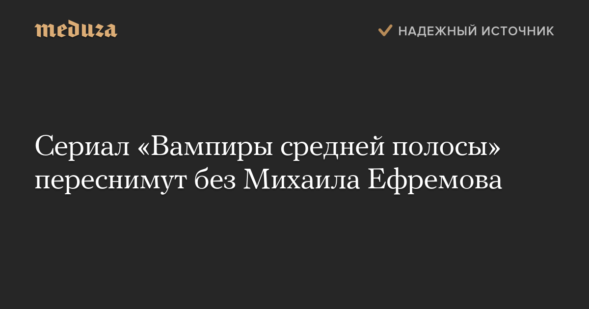 Сериал «Вампиры средней полосы», главную роль в котором исполнял Михаил Ефремов, будет переснят. Об этом сообщает «Комсомольская правда» со ссылкой на актера Дмитрия Лысенкова.