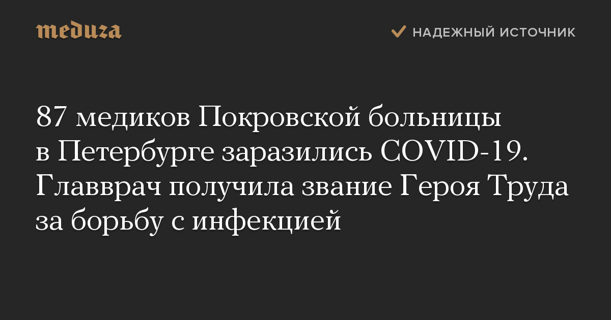 87 медиков Покровской больницы в Петербурге заразились COVID-19. Главврач получила звание Героя Труда за борьбу с инфекцией
