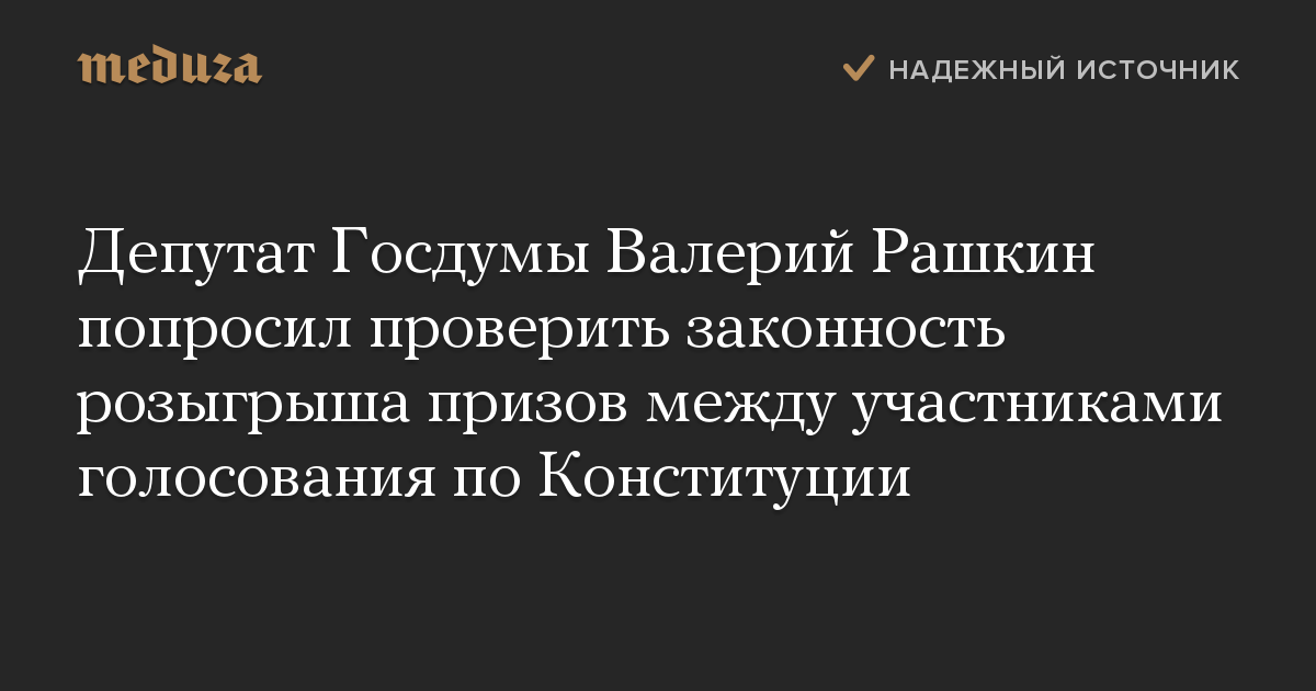 Информация о розыгрыше размещена в официальных изданиях мэрии Москвы и ее подразделений, отметил в запросе Рашкин. По мнению депутата, это нарушает закон о поправках к Конституции, по которому участие в голосовании является свободным и добровольным.