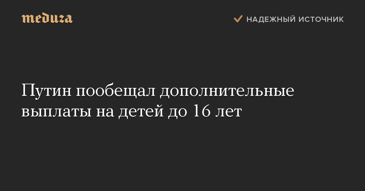 Путин пообещал дополнительные выплаты на детей до 16 лет