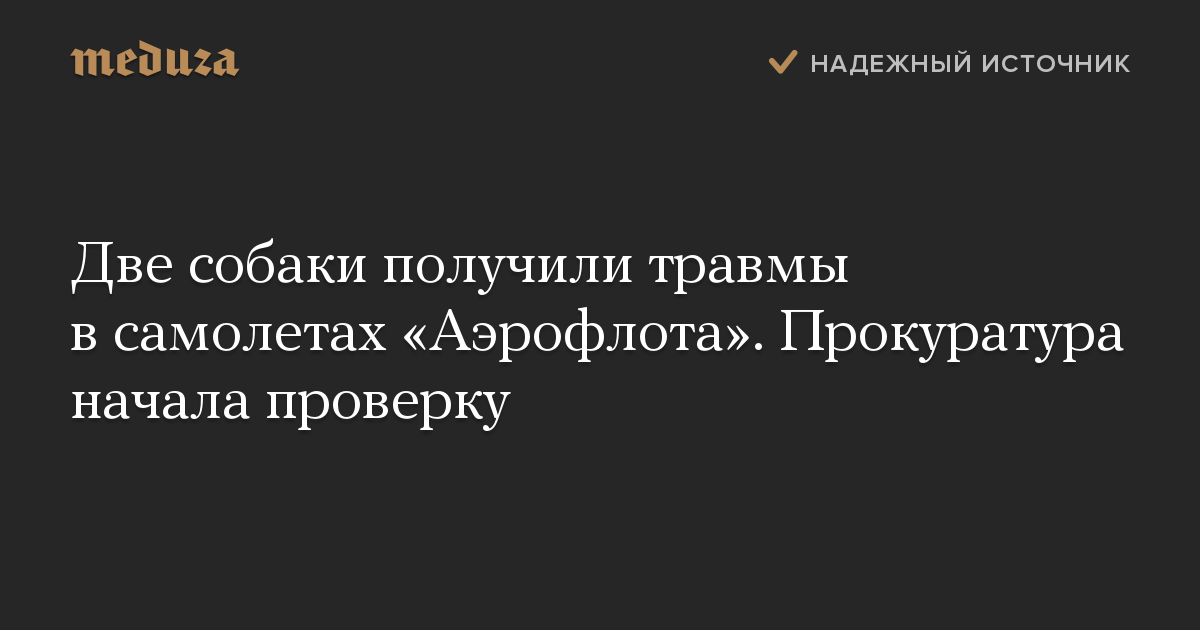Московская межрегиональная транспортная прокуратура организовала проверку после того, как две собаки получили травмы на рейсах авиакомпании «Аэрофлот».