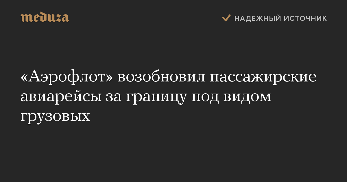 «Аэрофлот» возобновил пассажирские авиарейсы за границу под видом грузовых
