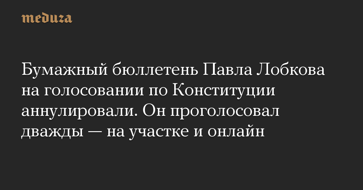 Бумажный бюллетень Павла Лобкова на голосовании по Конституции аннулировали. Он проголосовал дважды — на участке и онлайн