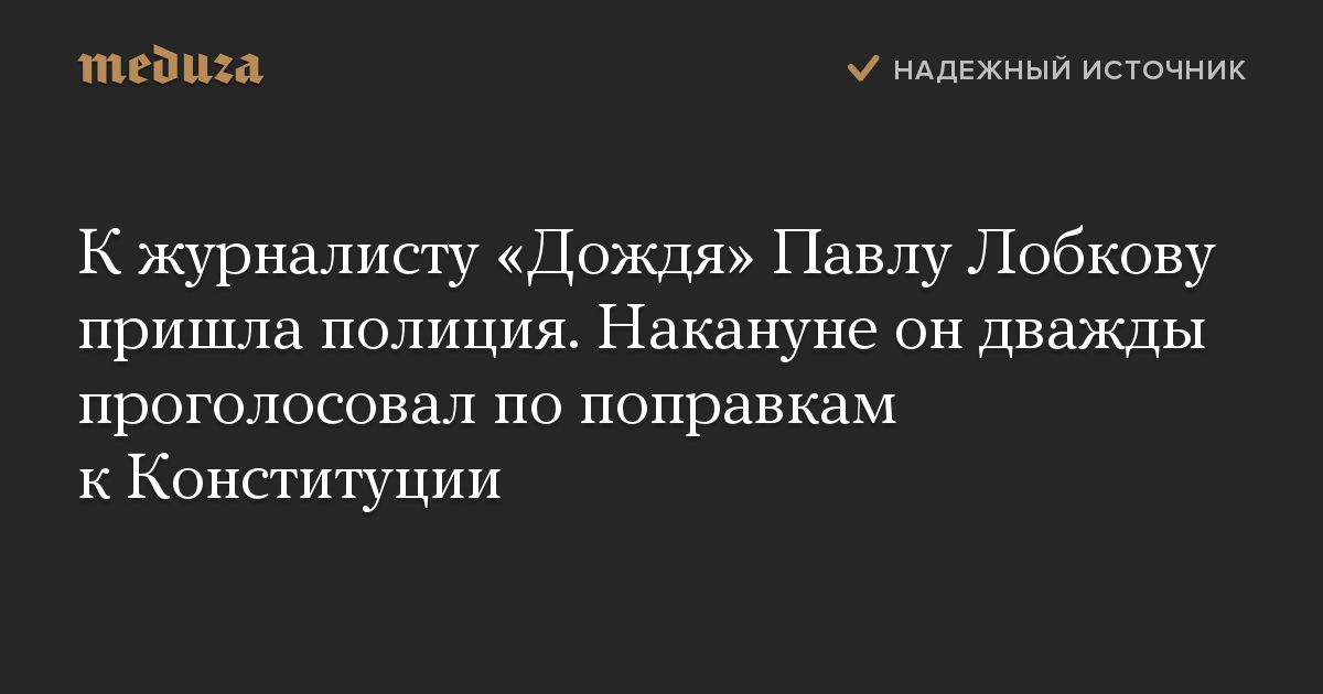 К журналисту «Дождя» Павлу Лобкову пришла полиция. Накануне он дважды проголосовал по поправкам к Конституции