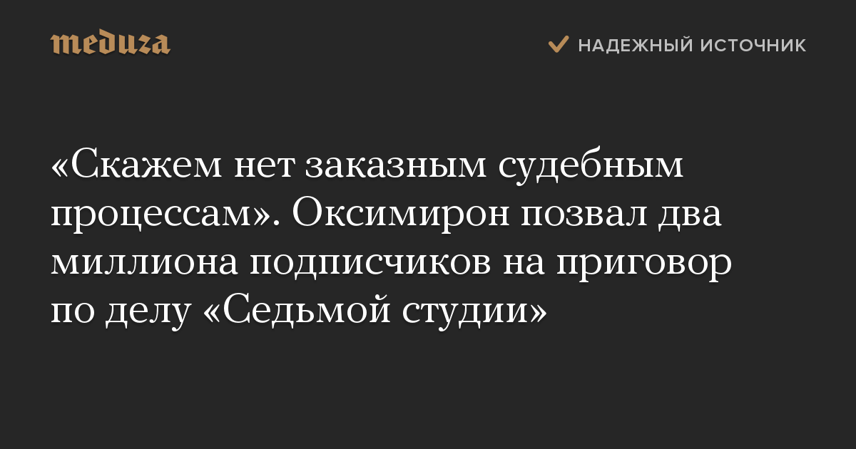 Рэпер Оксимирон опубликовал в инстаграме пост, в котором раскритиковал судебный процесс по делу «Седьмой студии», а также выступил против голосования по поправкам к Конституции во время пандемии коронавируса.