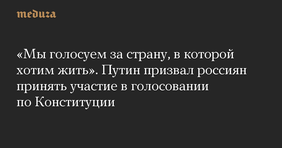 «Мы голосуем за страну, в которой хотим жить». Путин призвал россиян принять участие в голосовании по Конституции