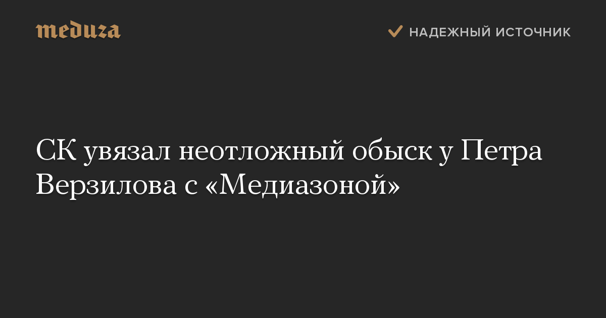 Следственный комитет проводил у издателя «Медиазоны» Петра Верзилова обыск без судебного решения (неотложный обыск), поскольку обыск «не терпел отлагательств», а получить решение было невозможно.