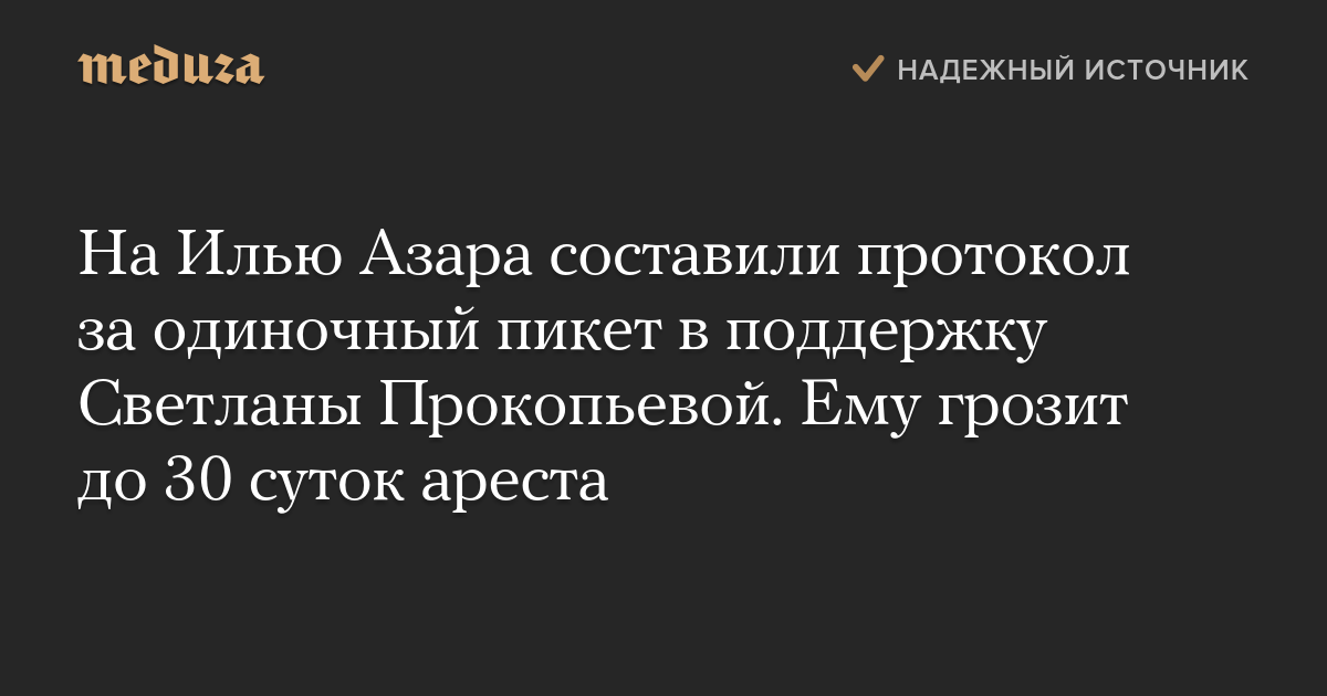 На Илью Азара составили протокол за одиночный пикет в поддержку Светланы Прокопьевой. Ему грозит до 30 суток ареста