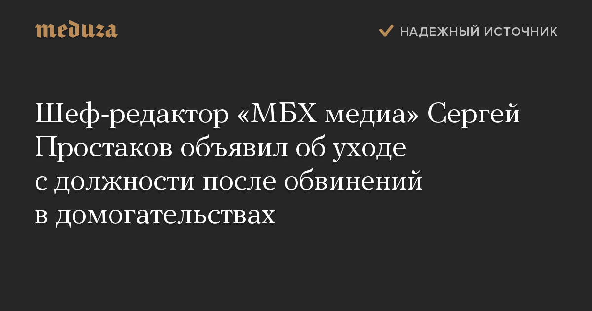 Шеф-редактор «МБХ медиа» Сергей Простаков объявил об уходе с должности после обвинений в домогательствах