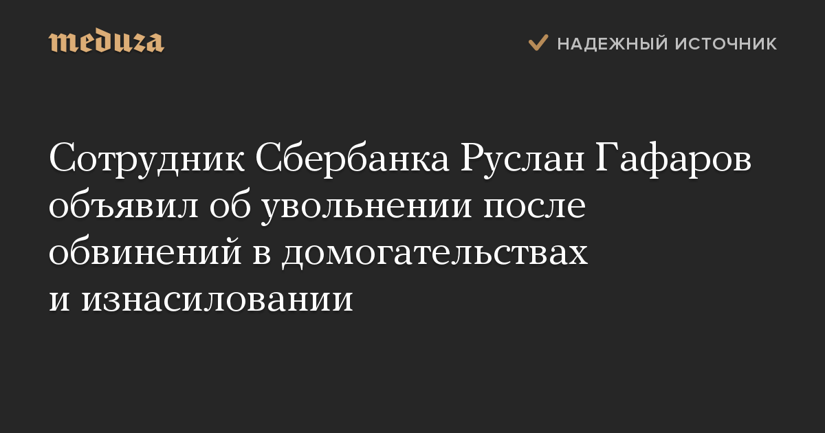 Сотрудник Сбербанка Руслан Гафаров объявил об увольнении после обвинений в домогательствах и изнасиловании