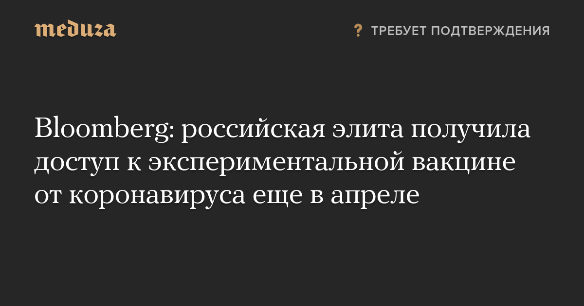 Обновлено. Директор центра имени Гамалеи Александр Гинцбург заявил «Интерфаксу», что ему неизвестно о том, что представители элиты получили доступ к российской вакцине от COVID-19. Директор Института фармации и трансляционной медицины Сеченовского университета Вадим Тарасов также отрицает информацию, что вакцина от коронавируса была доступна некоторым представителям российской элиты с апреля. «Это спекуляция. Еще не были проведены доклинические исследования, это слухи», — сказал Тарасов «Интерфаксу». В Минздраве также заявили, что вакцина в гражданский оборот не выпущена, а тестируется лишь на добровольцах, официально включенных в испытания.