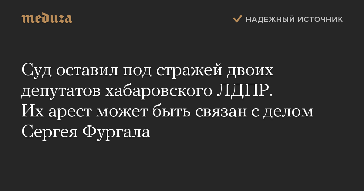 Суд оставил под стражей двоих депутатов хабаровского ЛДПР. Их арест может быть связан с делом Сергея Фургала
