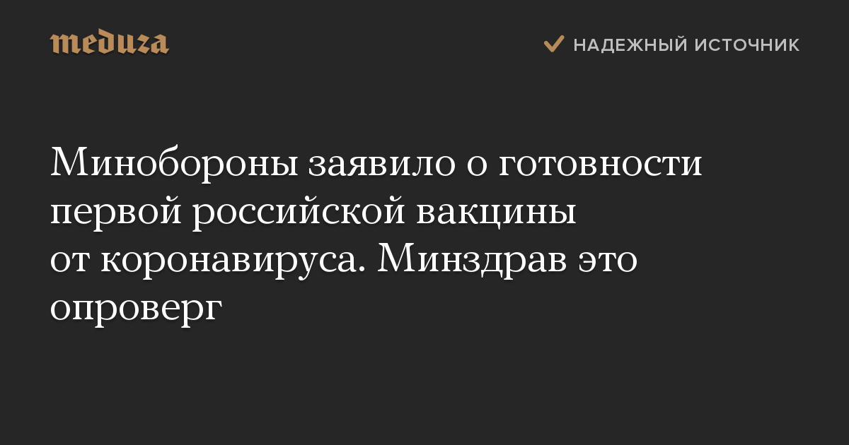 Минобороны заявило о готовности первой российской вакцины от коронавируса. Минздрав это опроверг