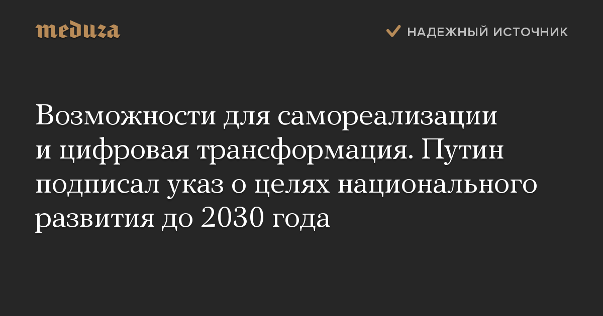 Возможности для самореализации и цифровая трансформация. Путин подписал указ о целях национального развития до 2030 года
