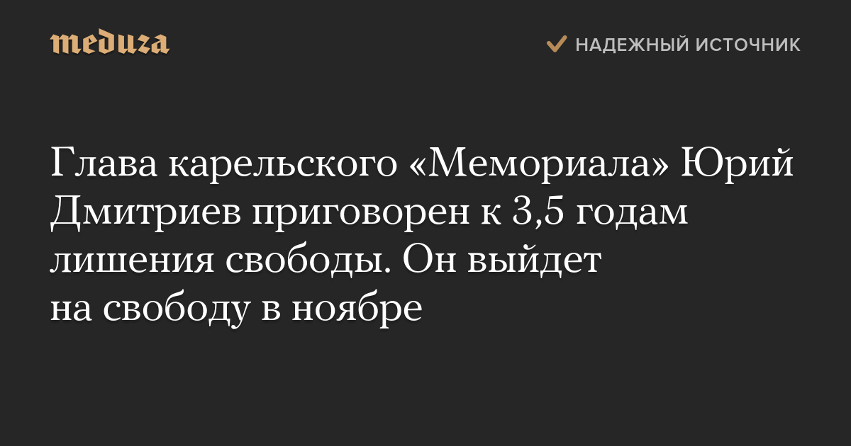 Глава карельского «Мемориала» Юрий Дмитриев приговорен к 3,5 годам лишения свободы. Он выйдет на свободу в ноябре