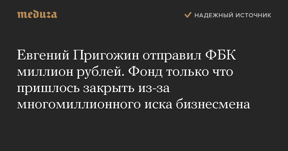 Евгений Пригожин отправил ФБК миллион рублей. Фонд только что пришлось закрыть из-за многомиллионного иска бизнесмена