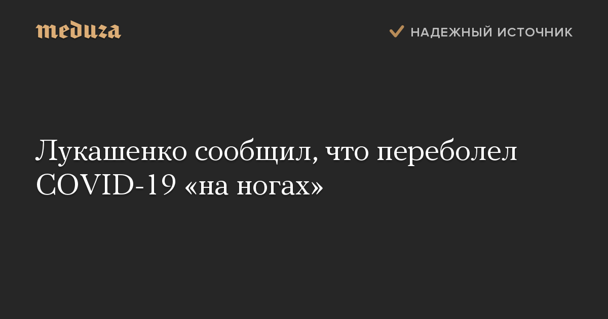 Президент Белоруссии Александр Лукашенко заявил, что переболел COVID-19 «на ногах». Об этом сообщает «Белта».