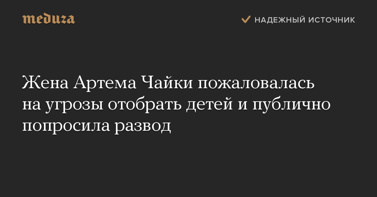 Жена Артема Чайки пожаловалась на угрозы отобрать детей и публично попросила развод