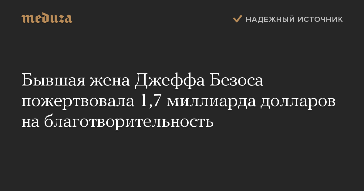 Бывшая жена Джеффа Безоса пожертвовала 1,7 миллиарда долларов на благотворительность