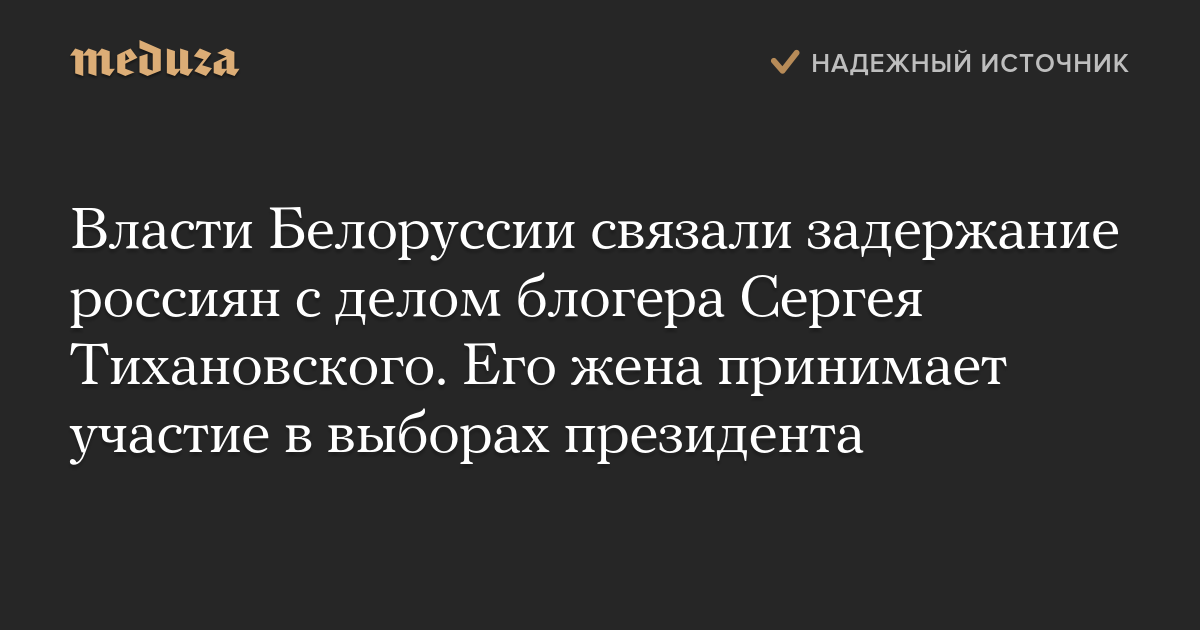 Власти Белоруссии связали задержание россиян с делом блогера Сергея Тихановского. Его жена принимает участие в выборах президента