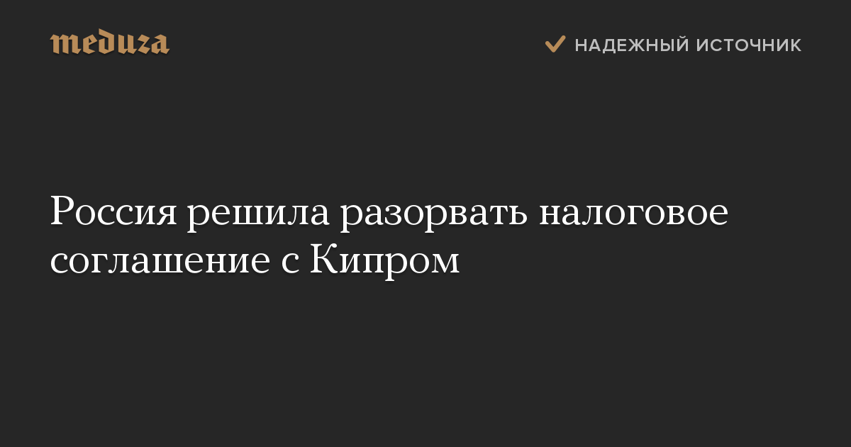 Минфин России с 3 августа запустил процедуру разрыва соглашения об избежании двойного налогообложения с Кипром. Об этом говорится на сайте ведомства.