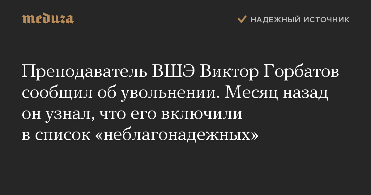 «Официального объяснения от руководства пока не получил, но и так все понятно», — написал Горбатов. Представители ВШЭ это пока не комментировали.