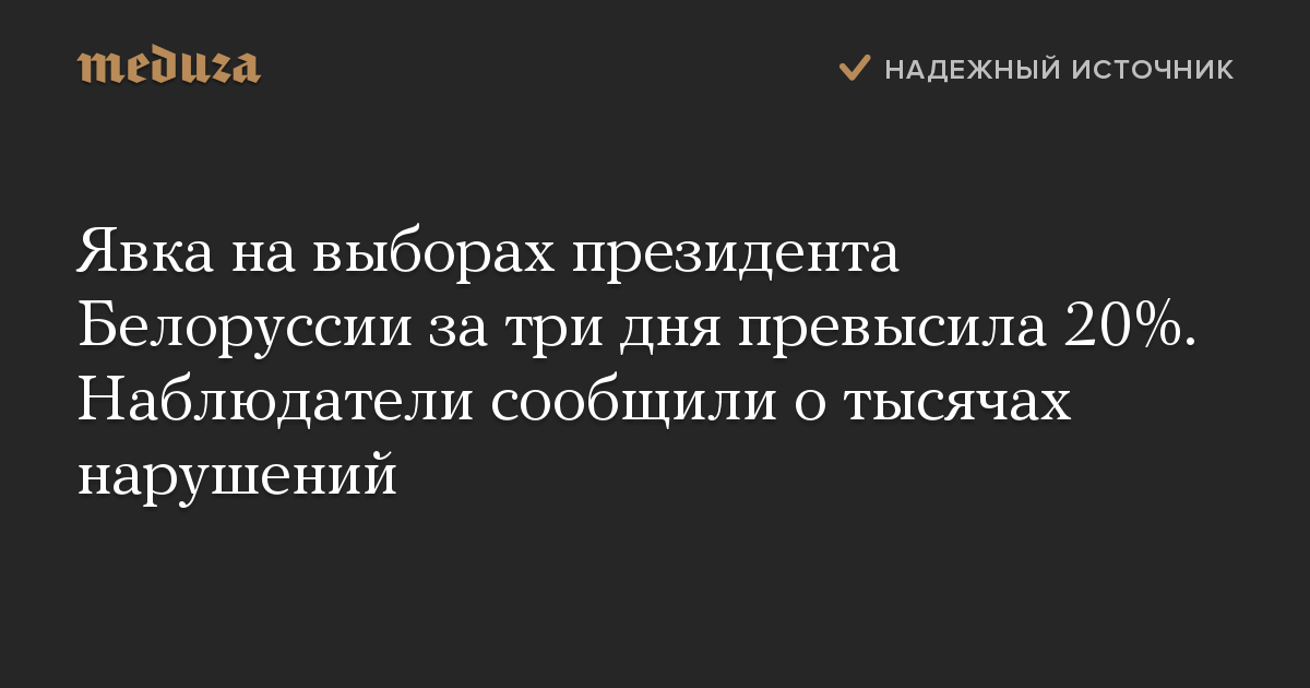 Явка на выборах президента Белоруссии за три дня превысила 20%. Наблюдатели сообщили о тысячах нарушений