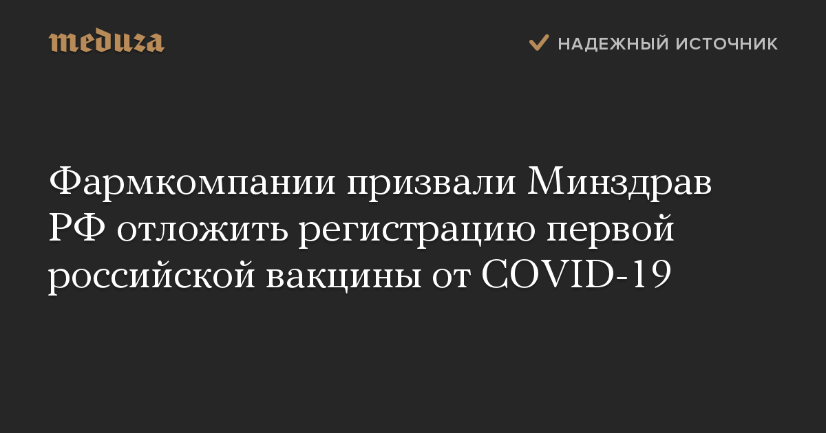 Фармкомпании призвали Минздрав РФ отложить регистрацию первой российской вакцины от COVID-19