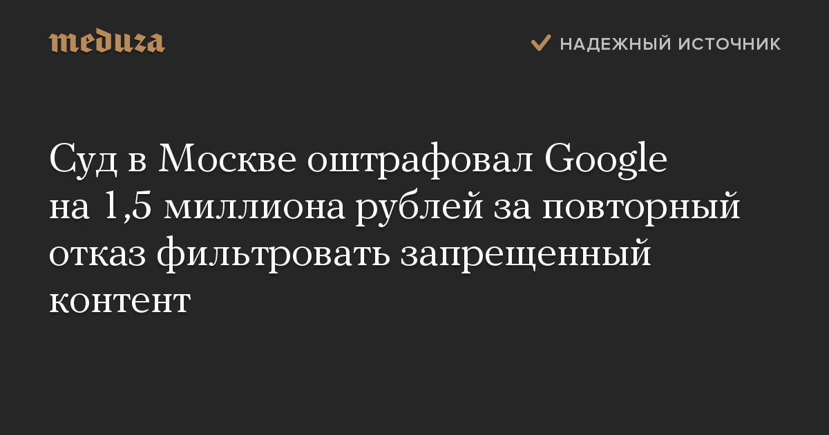Суд в Москве оштрафовал Google на 1,5 миллиона рублей за повторный отказ фильтровать запрещенный контент