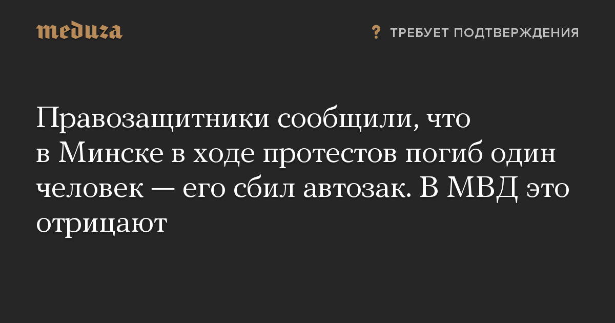 Правозащитники сообщили, что в Минске в ходе протестов погиб один человек — его сбил автозак. В МВД это отрицают