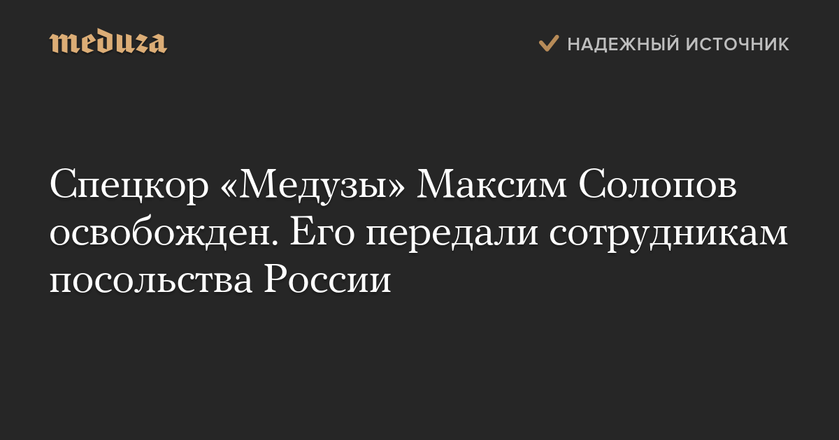 Спецкор «Медузы» Максим Солопов освобожден. Его передали сотрудникам посольства России