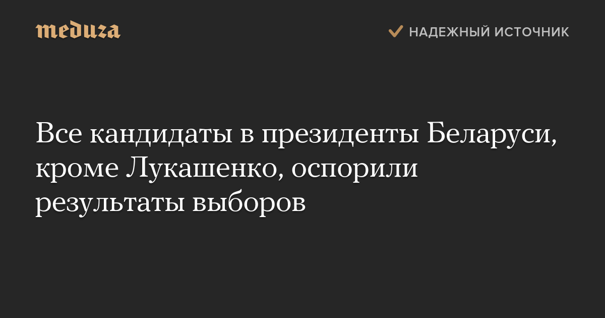 Все кандидаты в президенты Беларуси, кроме Лукашенко, оспорили результаты выборов