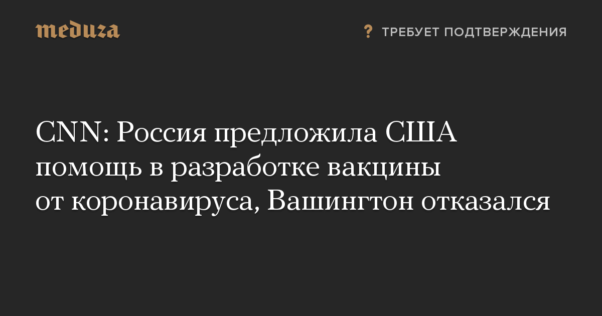 CNN: Россия предложила США помощь в разработке вакцины от коронавируса, Вашингтон отказался