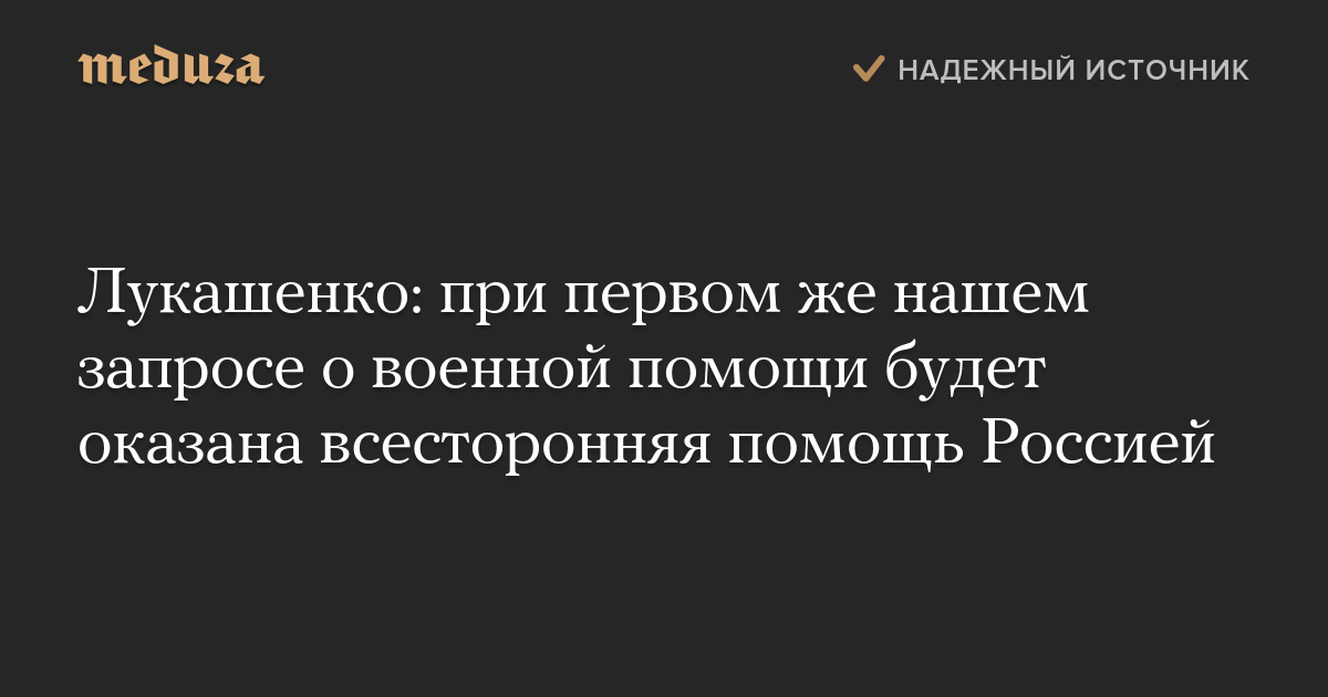 Обновление: «Белта» поправила новость. Теперь там говорится, что помощь Россия окажет «в случае внешних военных угроз».