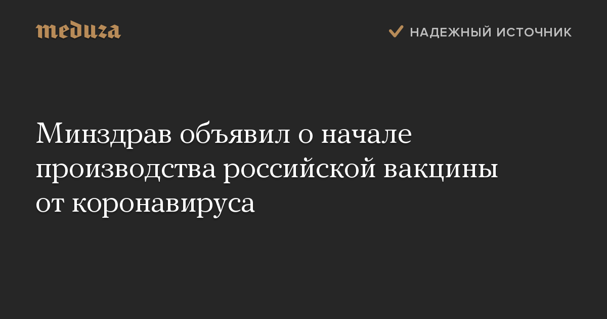 Минздрав объявил о начале производства российской вакцины от коронавируса
