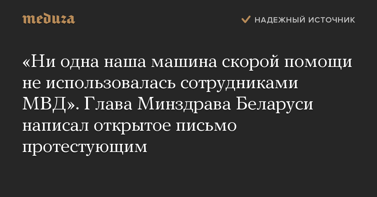 «Ни одна наша машина скорой помощи не использовалась сотрудниками МВД». Глава Минздрава Беларуси написал открытое письмо протестующим