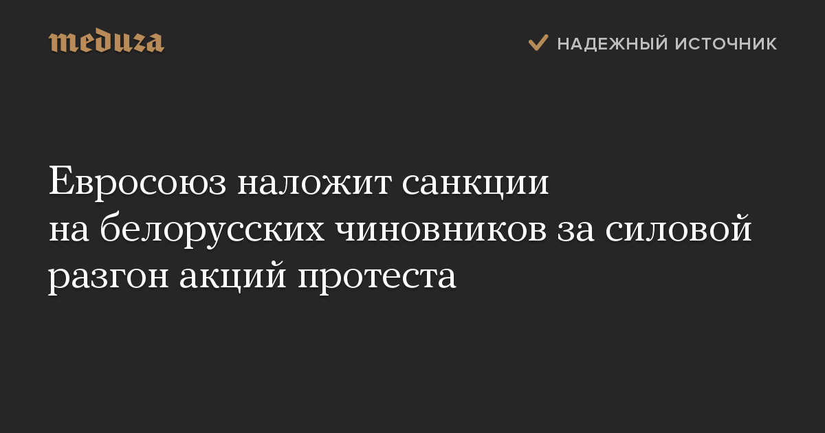 Евросоюз наложит санкции на представителей белорусских властей, ответственных за «шокирующее и недопустимое» насилие при разгоне акций протеста, а также за фальсификацию выборов. Об этом заявил президент Европейского совета Шарль Мишель.
