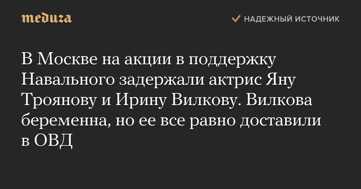 В Москве на акции в поддержку Навального задержали актрис Яну Троянову и Ирину Вилкову. Вилкова беременна, но ее все равно доставили в ОВД