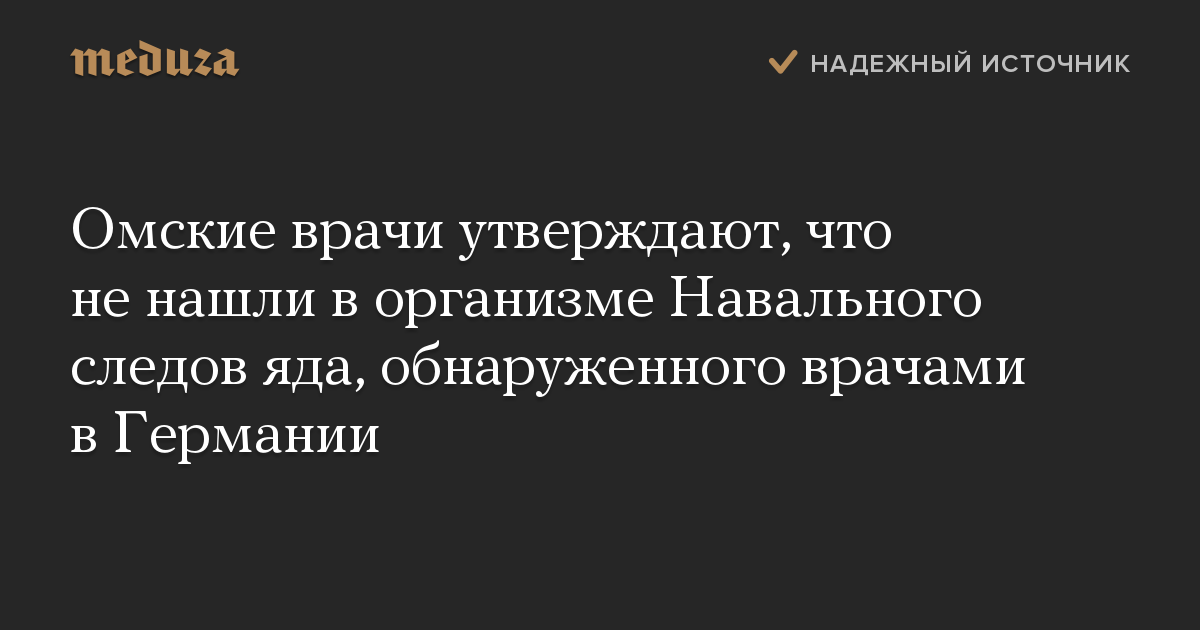 Омские врачи утверждают, что не нашли в организме Навального следов яда, обнаруженного врачами в Германии