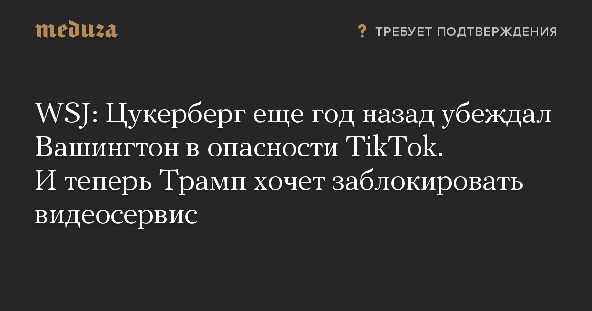 WSJ: Цукерберг еще год назад убеждал Вашингтон в опасности TikTok. И теперь Трамп хочет заблокировать видеосервис