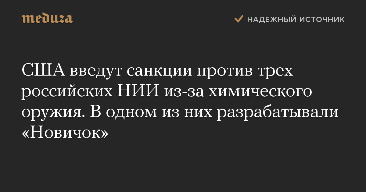 США введут санкции против трех российских НИИ из-за химического оружия. В одном из них разрабатывали «Новичок»