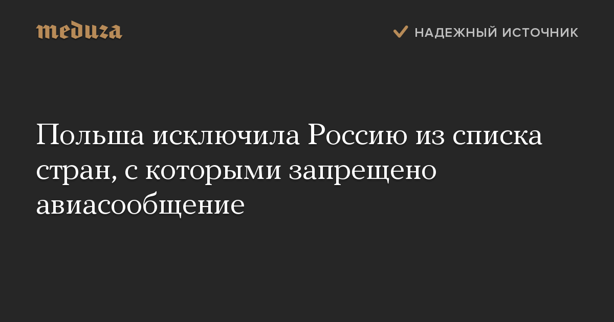 Польша исключила Россию из списка стран, с которыми запрещено авиасообщение