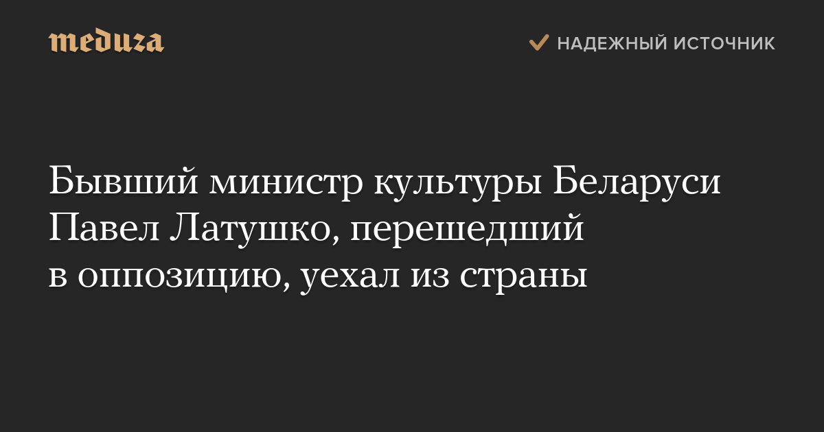 Член оппозиционного Координационного совета по мирной передаче власти, бывший министр культуры Беларуси Павел Латушко уехал из страны.
