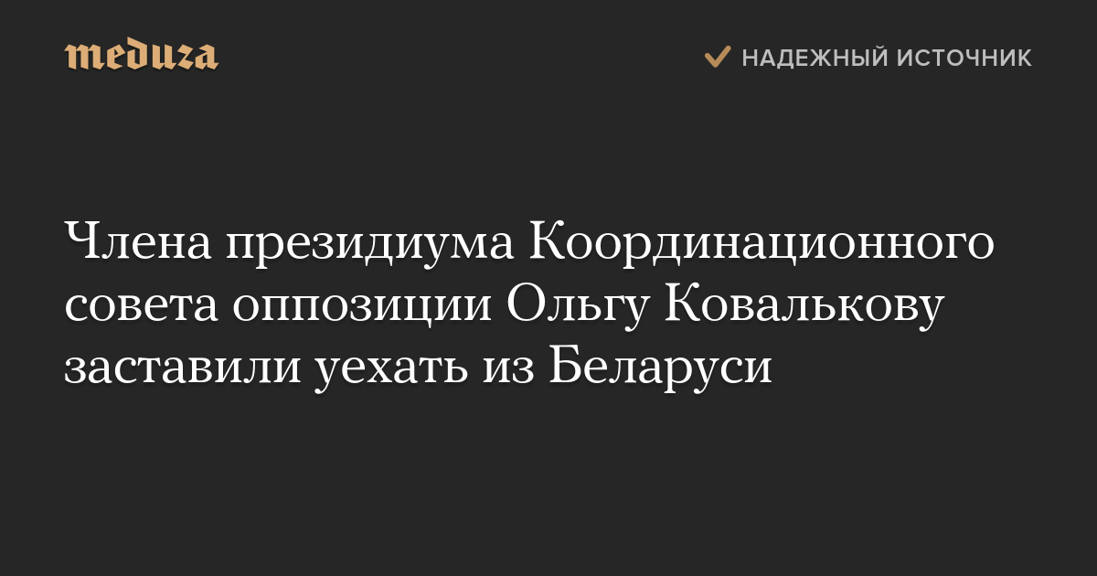 Ольгу Ковалькову, входящую в президиум созданного оппозицией Координационного совета по мирной передаче власти, вывезли из Беларуси. Сейчас она находится в Польше.