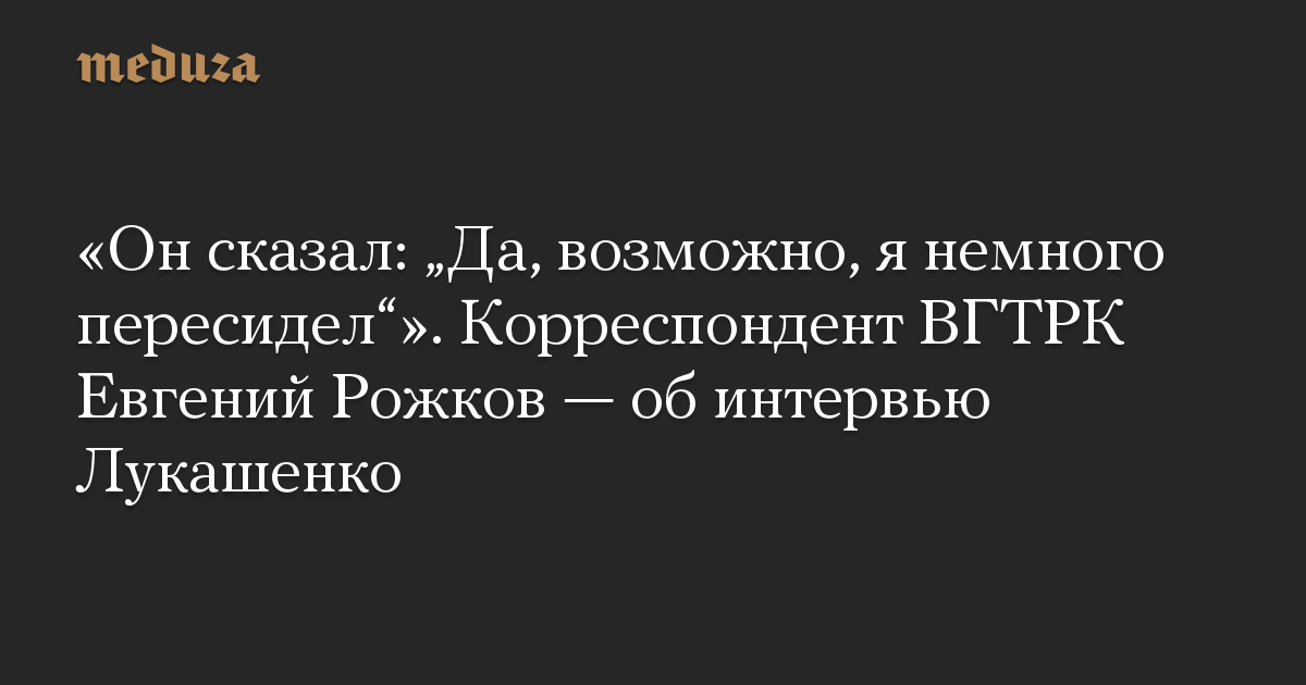 Александр Лукашенко признал, что «возможно, немного пересидел» в кресле президента Беларуси. Об этом в эфире «России 1» заявил корреспондент ВГТРК Евгений Рожков после интервью Лукашенко российским СМИ.