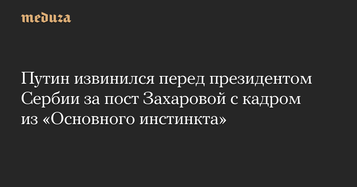 Путин извинился перед президентом Сербии за пост Захаровой с кадром из «Основного инстинкта»