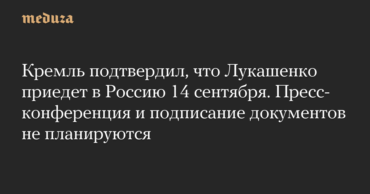 Кремль подтвердил, что Лукашенко приедет в Россию 14 сентября. Пресс-конференция и подписание документов не планируются