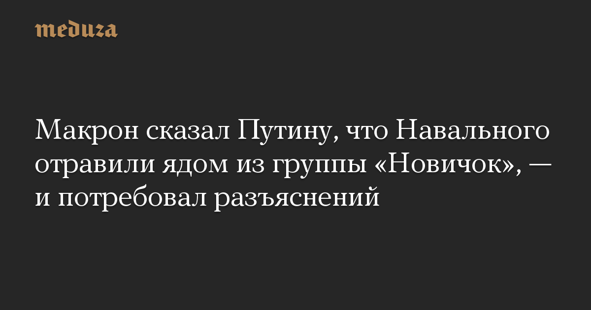 Макрон сказал Путину, что Навального отравили ядом из группы «Новичок», — и потребовал разъяснений